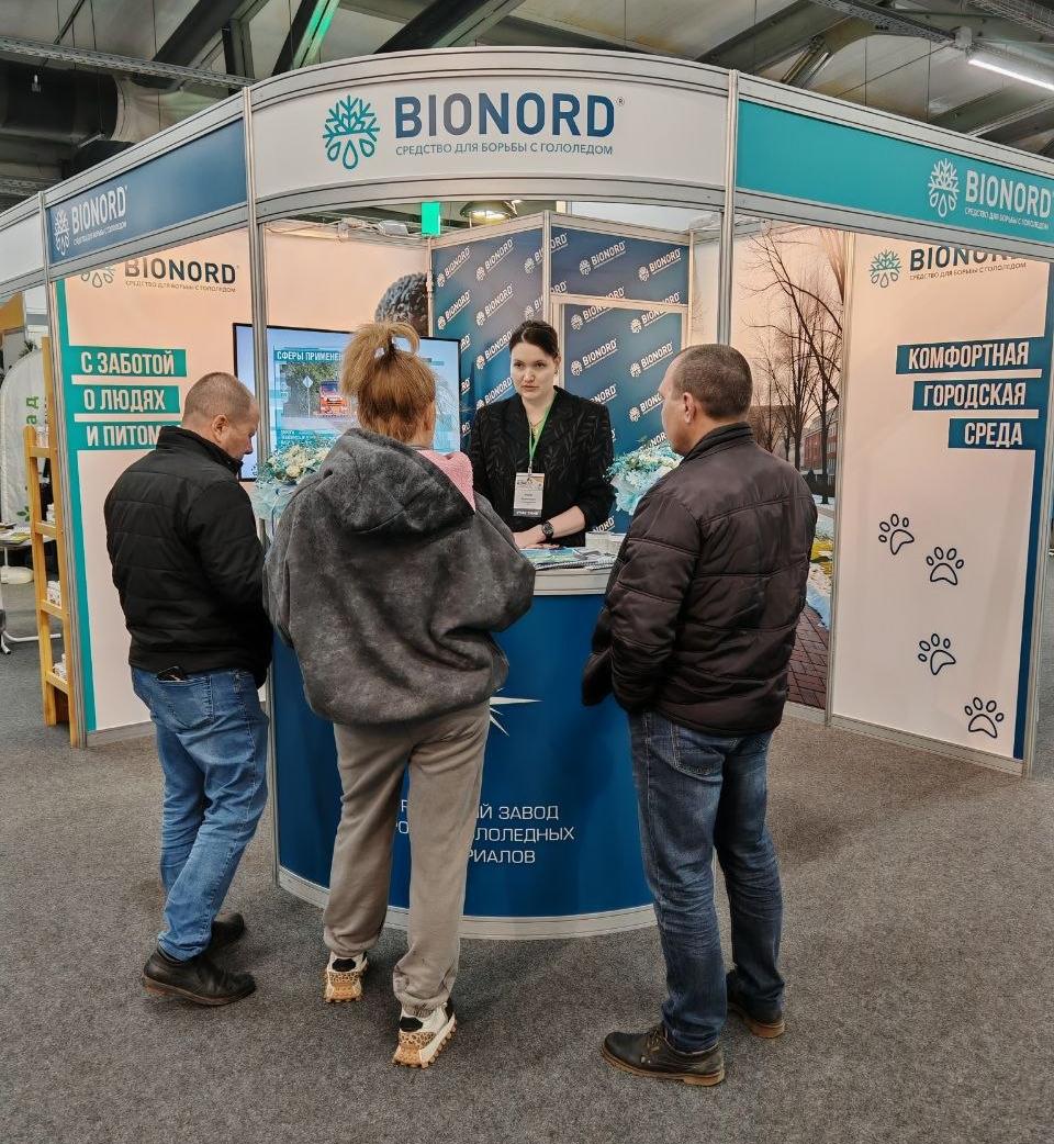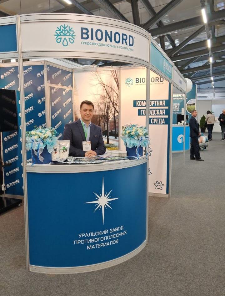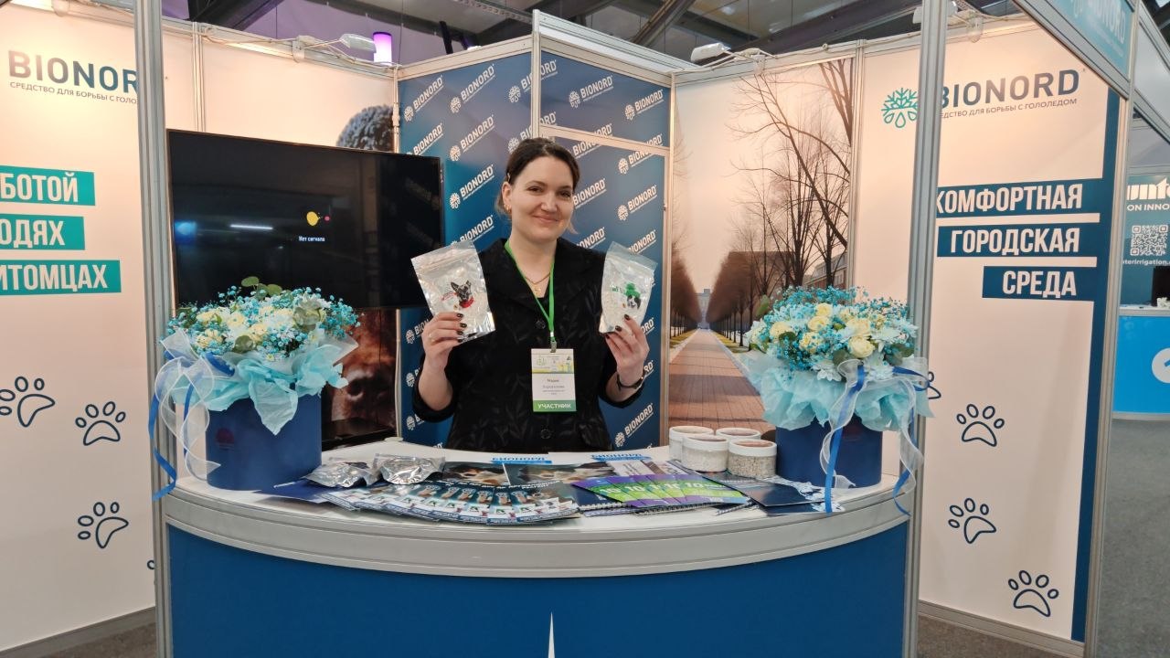 На стенде УЗПМ была представлена розничная линейка многокомпонентных противогололедных материалов, рассчитанных на различные условия эксплуатации в городской среде. Линейка охватывает широкий спектр задач – от обработки придомовых территорий и парковых зон до содержания промышленных площадок и наклонных поверхностей. Bionord Universal рассчитан на все типы твердых покрытий и сохраняет эффективность при температурах до минус 30 градусов, а входящие в состав ингибиторы коррозии снижают воздействие на металлические конструкции. Для частных домовладений и озелененных территорий разработан Bionord Green – он действует до минус 25 градусов и отличается щадящим воздействием на почву, обувь и лапы животных. На промышленных объектах и транспортных узлах применяется Bionord Pro, обеспечивающий плавление льда до минус 20 градусов. Bionord Pro Plus содержит мраморную крошку и предназначен для наклонных поверхностей – фрикционный эффект наступает сразу после нанесения, при этом крошка не травмирует лапы животных и не оставляет грязных следов при истирании.