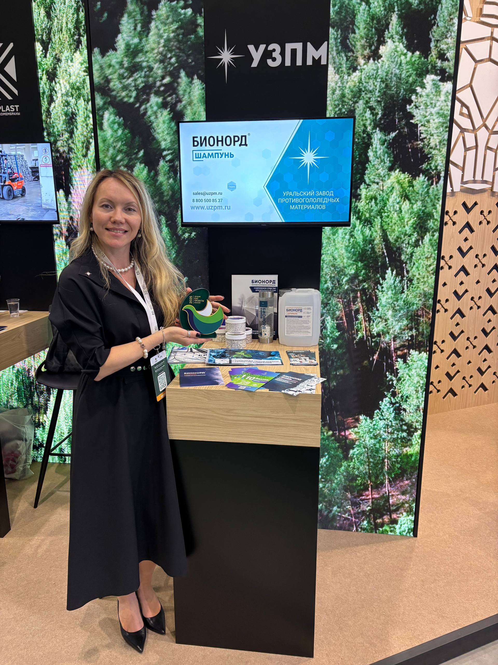 Продукция УЗПМ вошла в состав сборной экспозиции ключевых производителей Пермского края, получившей награду «Самый запоминающийся стенд». Завод представил две основные категории средств: противогололедные материалы «Бионорд» и пылеподавляющие составы «Бионорд Антипыль».